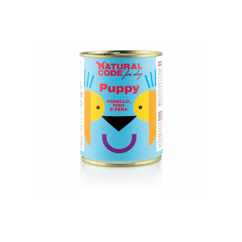 Puppy 400 Gr. – agnello, riso e pera. La carne di agnello è un ottimo cibo per i cuccioli di cane perché molto appetibile e digeribile, contiene proteina ad elevato valore biologico e vitamine fondamentali per un corretto sviluppo. il menu è indicato nel periodo compreso tra i 2 e i 12 mesi di vita